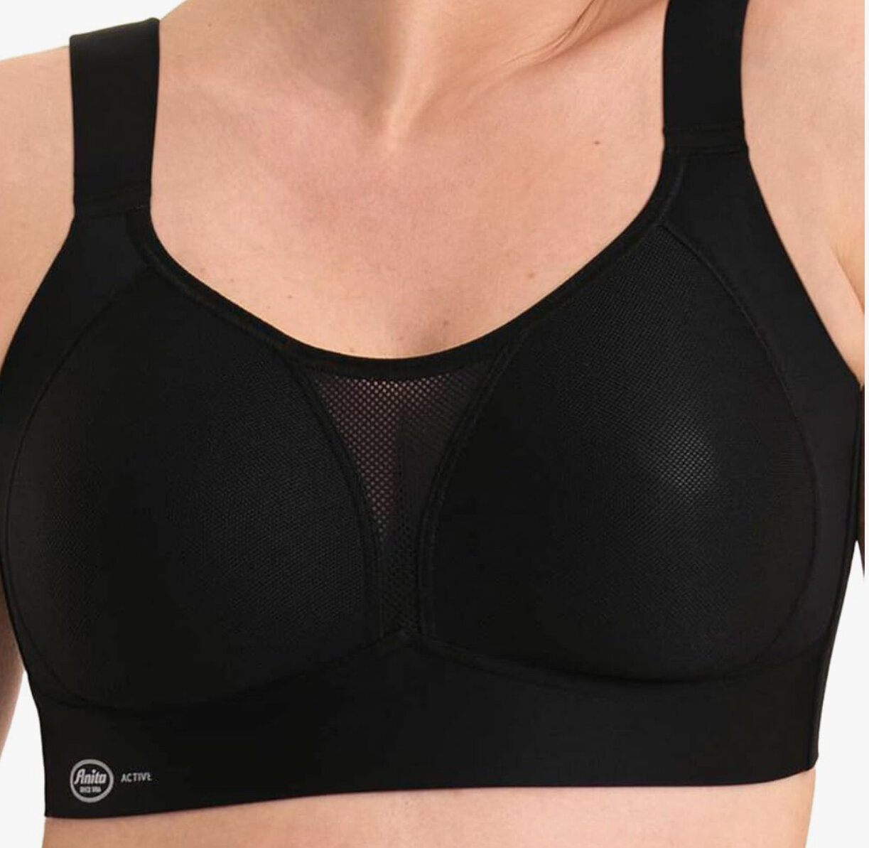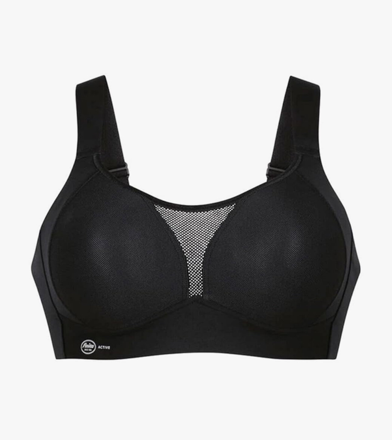 Pohodlná športová podprsenka čiernej farby Anita. Podprsenka je navrhnutá pre maximálnu oporu pri fyzických aktivitách. Priedušný materiál s jemnou sieťovinou zaisťuje optimálny odvod vlhkosti a komfort aj počas náročného tréningu. Široké ramienka a pevný spodný lem poskytujú stabilitu a pohodlie bez otlakov. Ideálna voľba pre beh, fitness alebo jogu. Dobre vyzerá s obľúbenými športovými legínami.